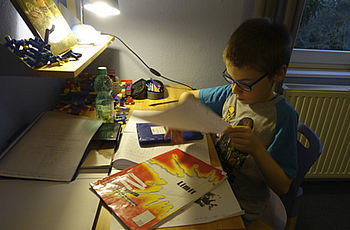 Nach dem Essen beginnt um 14.15 Uhr eine 45-minütige strukturierte Lern- und Hausaufgabenförderung, die mit kognitiven Förderprogrammen unseren belasteten Kindern wieder zu Lernerfolgen verhilft. Jedes Kind hat einen festen Arbeitsplatz, der individuell vom Kind mitgestaltet werden kann. Ab 15.00 Uhr beginnt das Miteinander in der Gruppe. An allen Nachmittagen der Woche gibt es verschiedene Angebote in der Tagesgruppe. Durch eine gemeinsame Wochenplanung werden die Kinder angeregt dabei eigene Ideen zu entwickeln. Ziel ist es, sie zu ermutigen, selbst Angebote entsprechend ihren Bedürfnissen zu entwickeln, diese auszuprobieren und dabei auch soziales Verhalten in der Gruppe mitzugestalten und zu erleben. Die Pädagogen halten Angebote auf motorisch-sportlichem Gebiet (z. B. Schwimmen, Bewegungsspiele Tischtennis), im musisch-kreativen Bereich (z. B. Malen, Werken, Rollenspiele, Musik), auf lebenspraktischem Gebiet (Kochen und Backen, Fahrrad reparieren), Theaterpädagogik (Verkleiden, Sketche, szenische Darstellung, Tanz), Ruhe- und Entspannungsangebote (Traumreisen, Autogenes Training) bereit. |